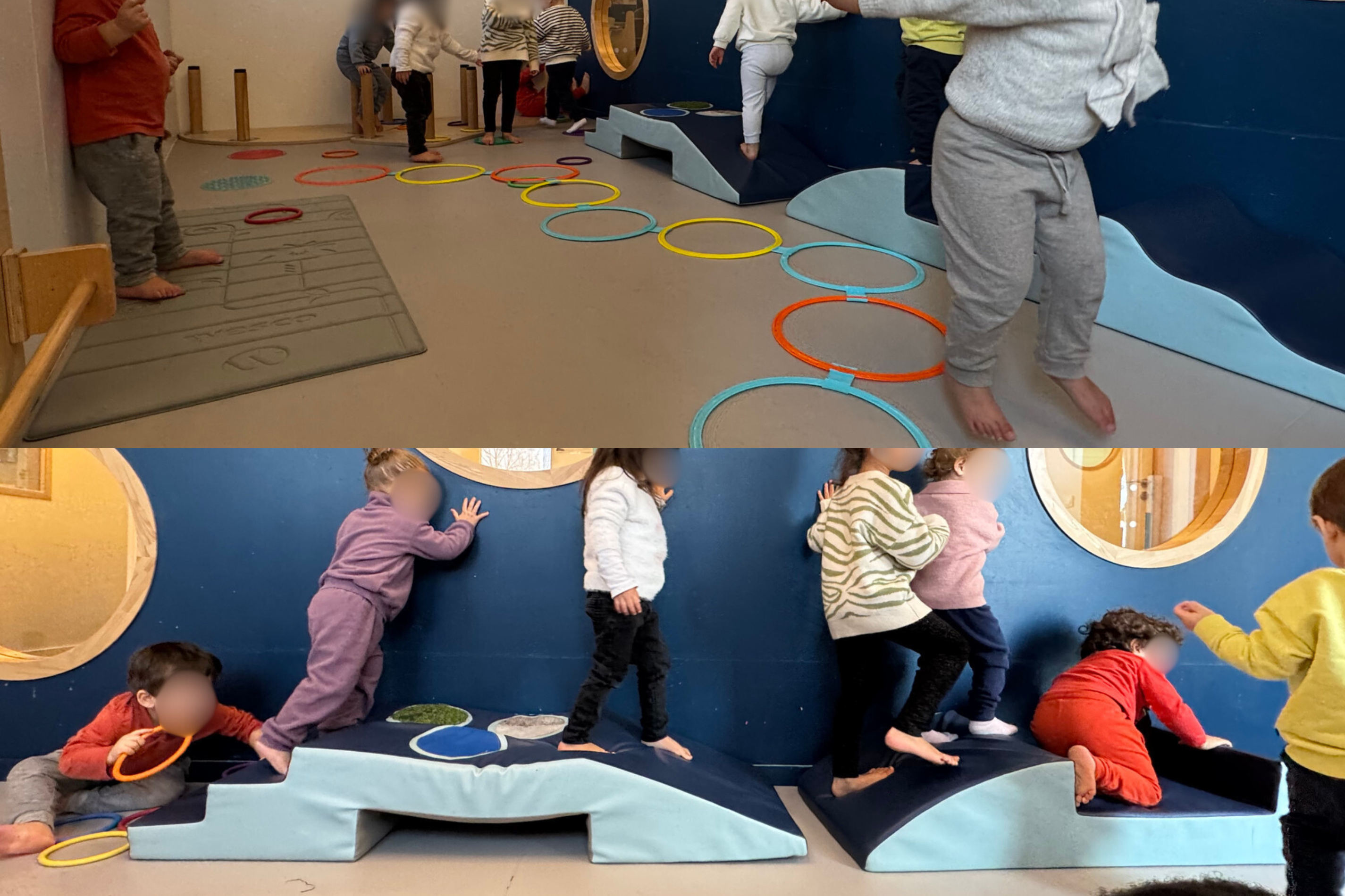 Parcours de motricité, équilibre, rampé, petits obstacles…